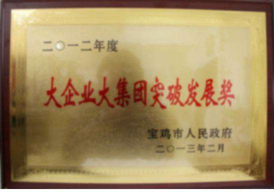 为了表彰先进,树立典型,针对2012年度宝鸡市工业战线良好的发展形式,市政府决定对纳税贡献大的企业单位和个人予以表彰奖励。由于贡献突出,宝鸡青岛正志绿色再生资源有限公司公司获得“大企业大集团突破发展奖“,”纳税突出贡献奖“ 2个奖项和30万元的奖金。本次表彰大会中,宝鸡青岛正志绿色再生资源有限公司公司是”大企业大集团突破发展奖“的唯一获奖单位。